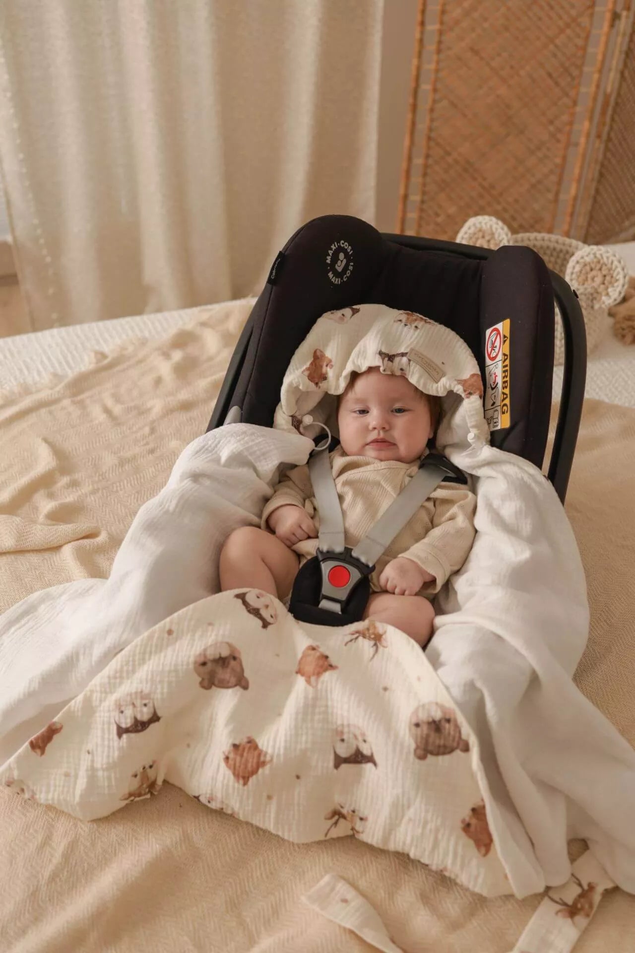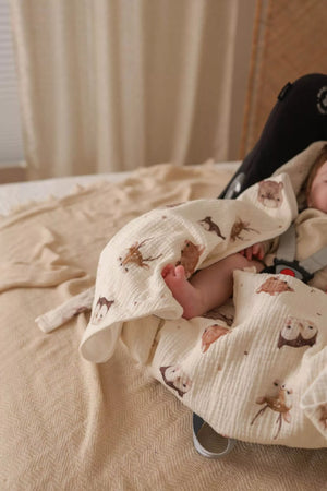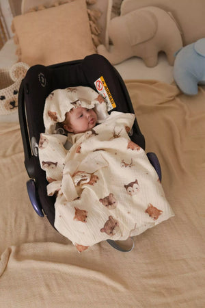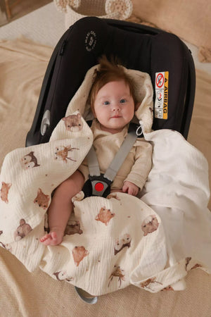Letní deka do autosedačky pro miminka – 100% mušelínová bavlna – Forest Friends