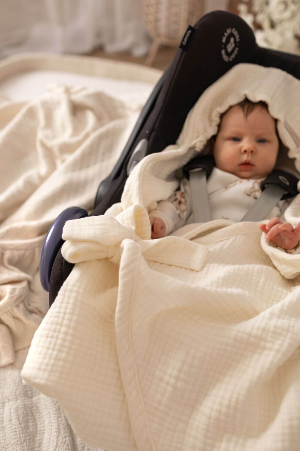 Domů Letní zavinovací deka do autosedačky – 4vrstvá mušelínová bavlna (5 barev)