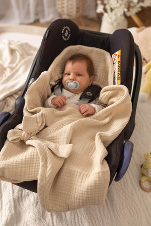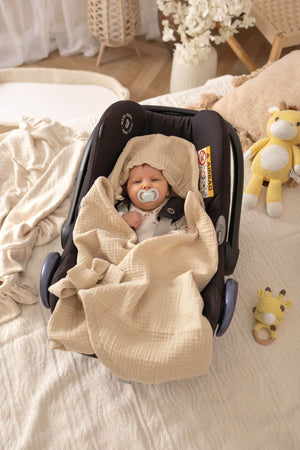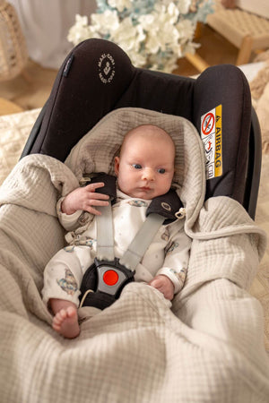Udržte své dítě v chladu, bezpečí a pohodlí během teplejších měsíců s naší letní dekou do autosedačky vyrobenou z luxusní čtyřvrstvé mušelínové bavlny. Tato lehká, prodyšná a měkká letní deka pro miminko je navržena speciálně pro jarní a letní cestování a nabízí rovnováhu mezi pohodlím a stylem.