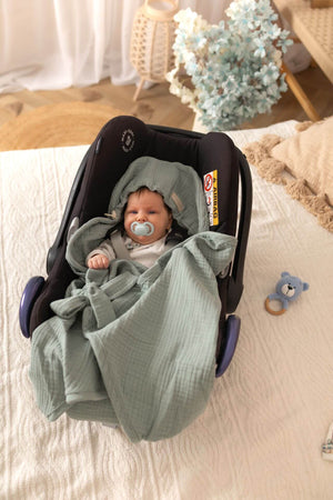 Letní zavinovací deka do autosedačky – 4vrstvá mušelínová bavlna (5 barev)