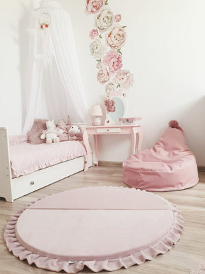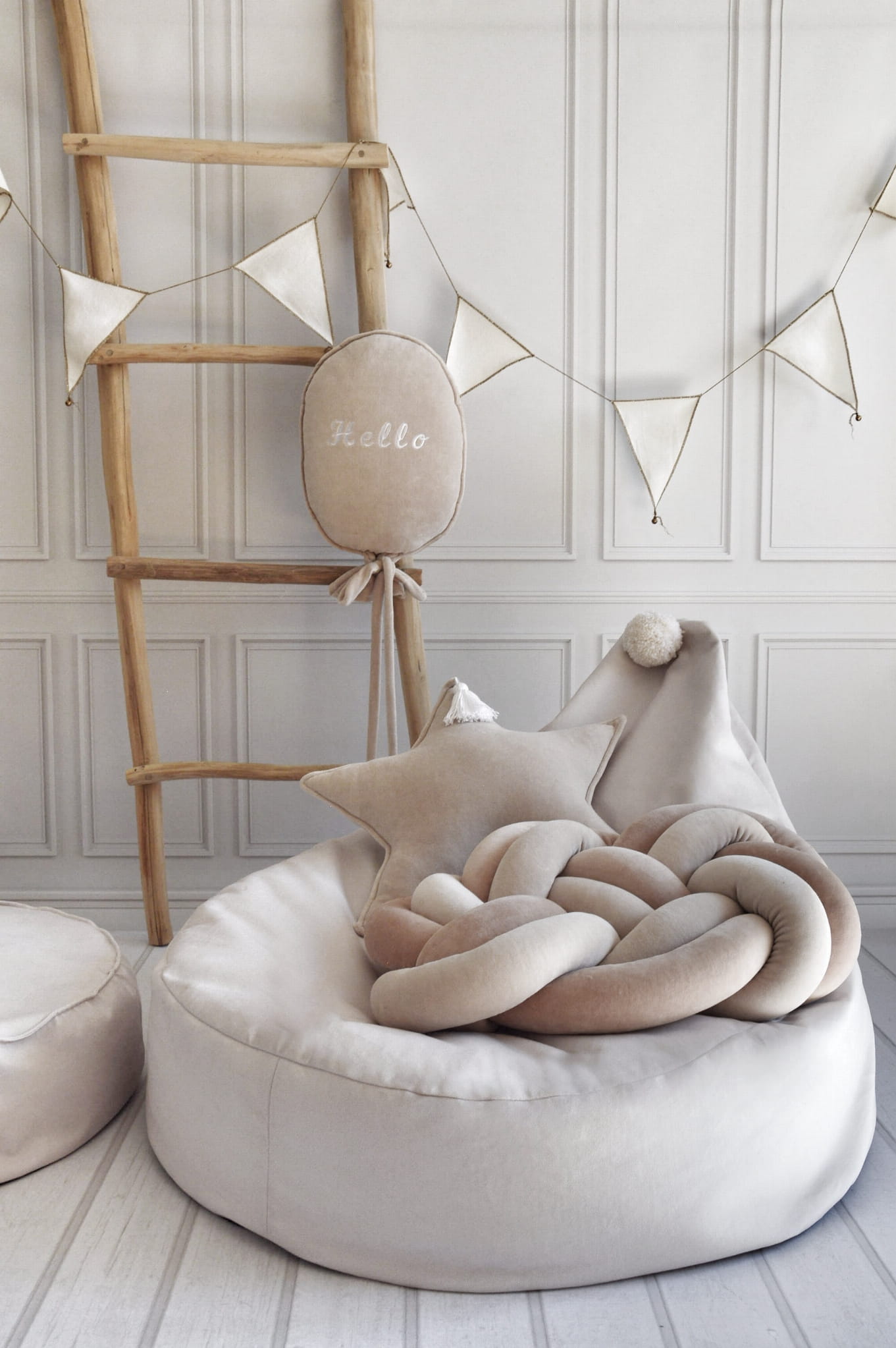 Sametový povrch a velkorysá velikost pufu z něj dělají ideální místo pro děti i dospělé – skvěle se hodí do čtecích koutků, na hraní i k odpočinku během klidných chvil doma.
